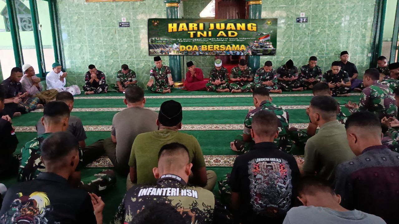 TIMIKA (Beritakeadilan.com, Papua) – Dalam rangka memperingati Hari Juang Ke-80 TNI AD Tahun 2025, Kodim 1710/Mimika menggelar kegiatan do’a bersama dilaksanakan secara terpimpin bertempat di Masjid Al-Askar untuk yang beragama Muslim dan di Ruang Rekreasi Makodim bagi prajurit beragama Nasrani, Jumat (12/12/2025).