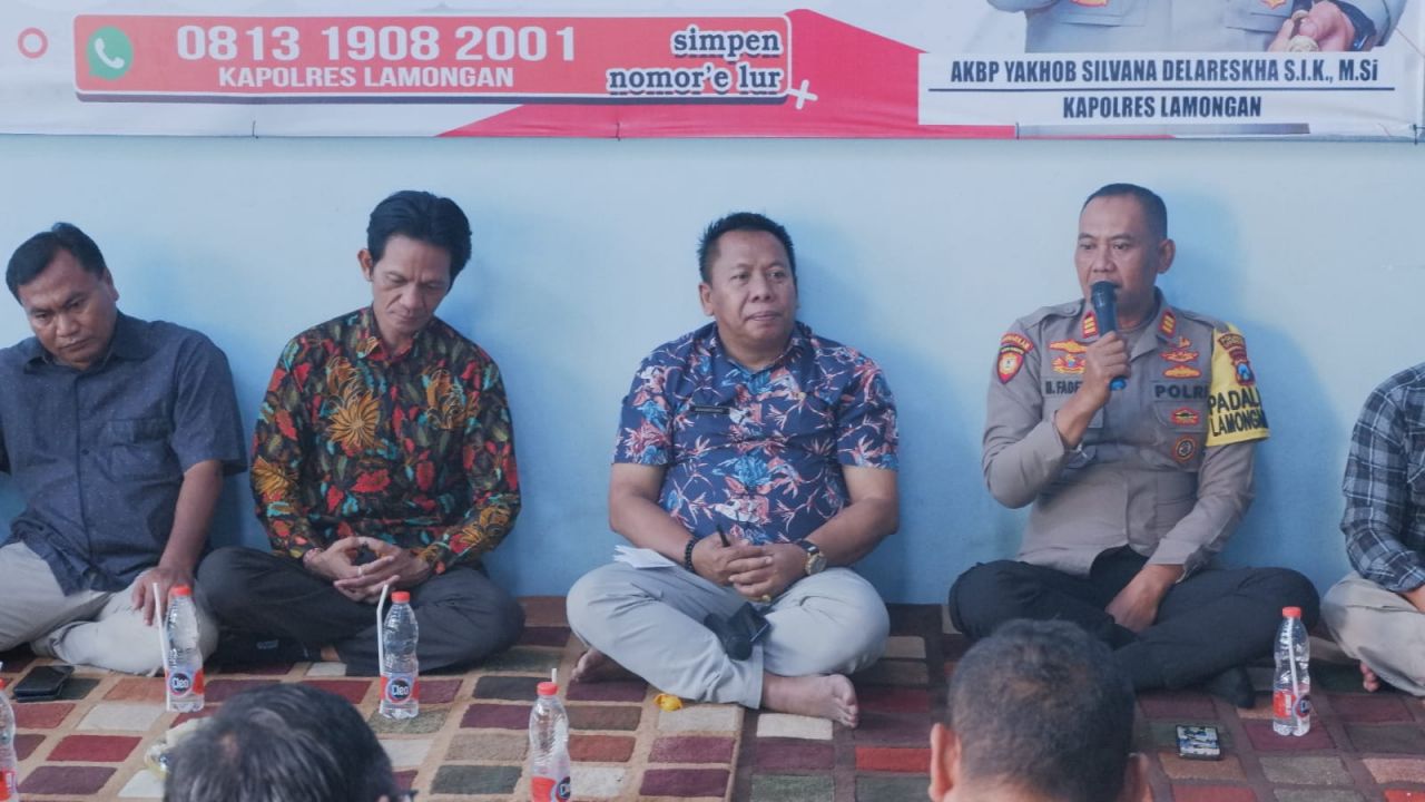 Kepolisian Resort (Polres) Lamongan menggelar Jumat Curhat bersama pengelola dan pedagang pasar di wilayah Kabupaten Lamongan, Jawa Timur, pada (14/07) Pagi.