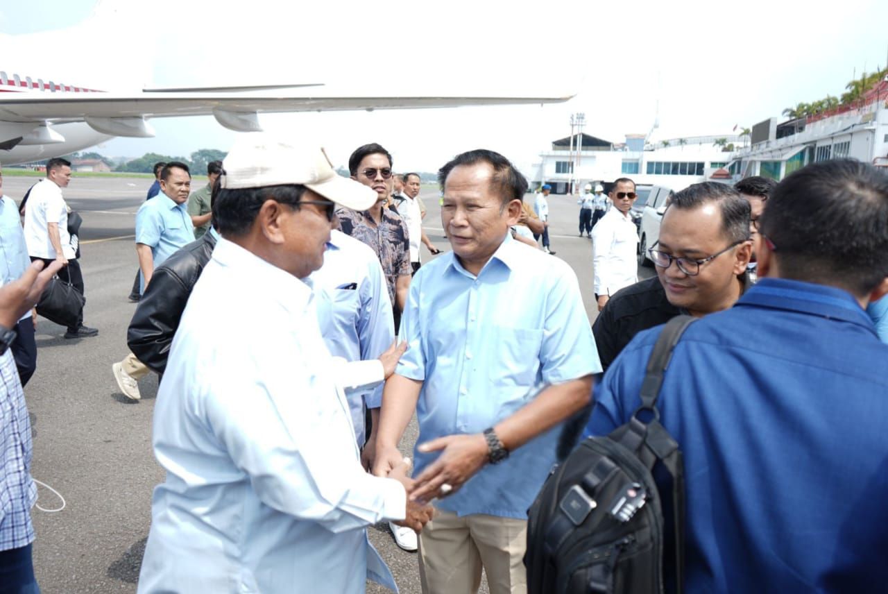 Prabowo langsung disambut di bandara Husein Sastranegara oleh Brigjen Pol (Purn) Budi setiawan sebagai Ketua Dewan Pembina DPP Prawiro Nusantara Jaya dan juga oleh mantan Gubernur Jawa Barat, Ridwan Kamil.