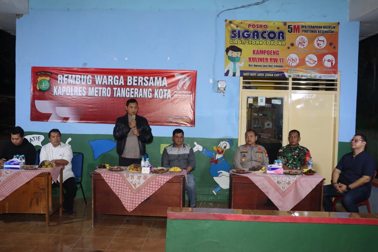 Guna mengantisipasi dan mencegah agar tidak ada korban yang merugikan lingkungan dan masyarakat, Kapolres Metro Tangerang Kota, Kombes Pol Zain Dwi Nugroho rutin menggelar Rembug warga di wilayah-wilayah yang disebut rawan terhadap aksi kejahatan jalanan.