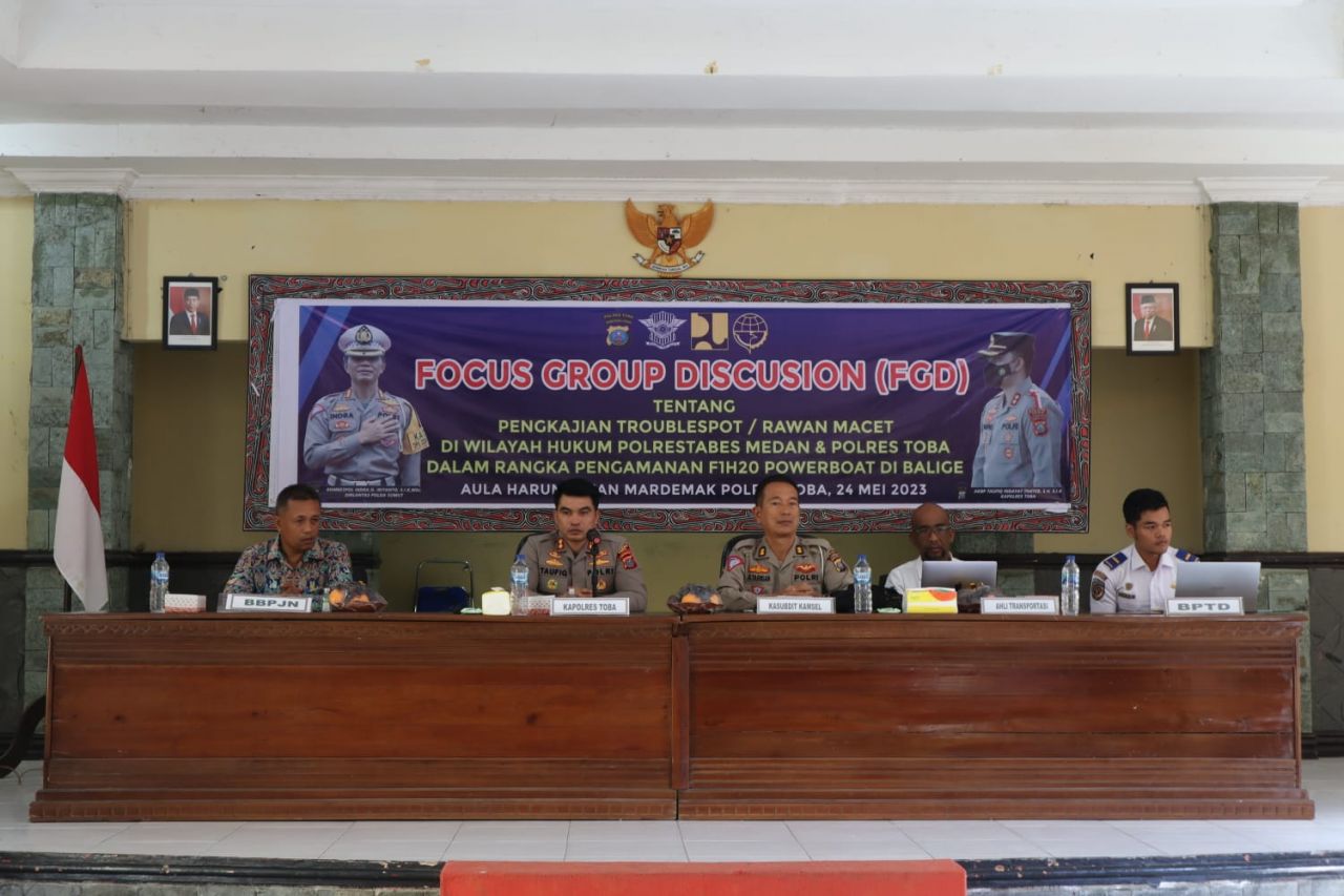 KABUPATEN TOBA (Beritakeadilan, Sumatera Utara) – Polres Toba menggelar FOCUS GROUP DISCUSION (FGD) Pengkajian Troublespot / rawanacer diwilayah hukum Polres Toba dalam rangka persiapan pengamanan F1H2O Powerboat di balige