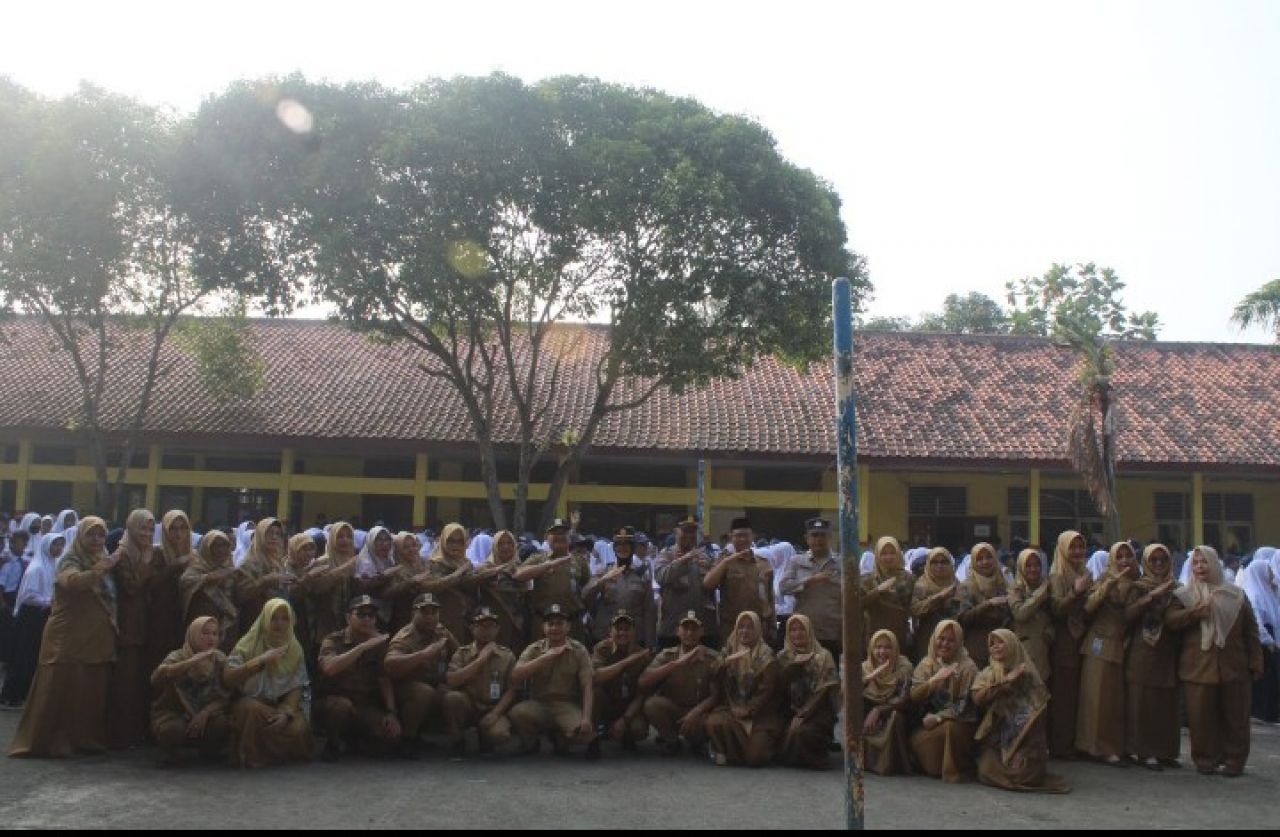 Kapolsek Pebayuran AKP Ani Widayati, SH Pimpin Upacara SMPN 1 PEBAYURAN Bekasi Kabupaten