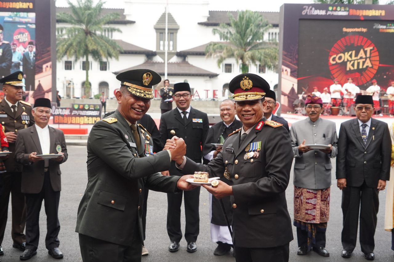 Peringatan HUT ke-77 Bhayangkara di Provinsi Jabar dihadiri oleh pejabat dari Kodam III/Slw diantaranya Kasdam III/Slw, Irdam III/Slw, Kapok Sahli Pangdam III/Slw dan Dandim 0618/Kota Bandung.