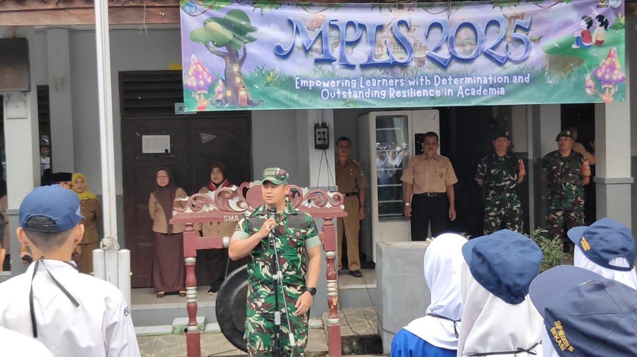 Dalam sambutannya, Kasdim menyampaikan pesan kepada para siswa untuk menjadikan MPLS sebagai momen awal pembentukan karakter disiplin dan cinta tanah air.