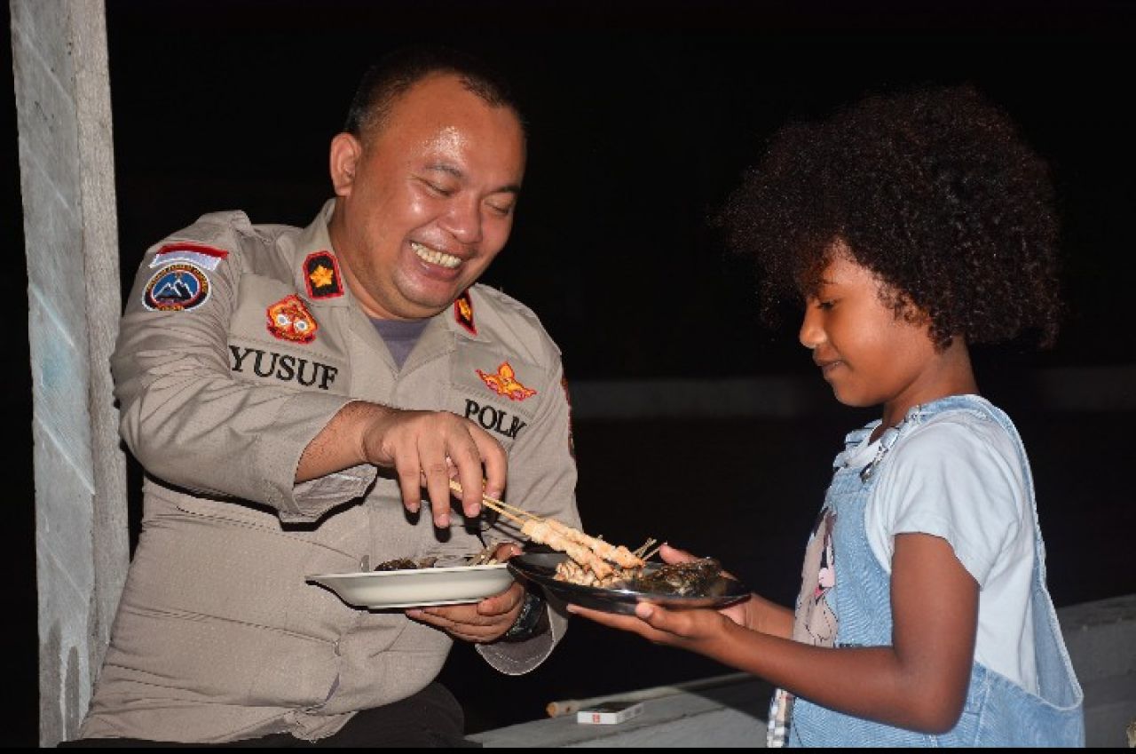 MIMIKA (Beritakeadilan.com, Papua) – Suasana penuh kehangatan dan kebersamaan tampak dalam sebuah momen istimewa di Kabupaten Mimika, Papua Tengah, Sabtu (1/2). Wakasatgas Humas Operasi Damai Cartenz-2025, Kompol Yusuf Tauziri, S.I.K., terlihat akrab berbagi makan malam bersama seorang anak Papua, mencerminkan pendekatan humanis yang terus dikedepankan dalam menjaga kedamaian di Bumi Cenderawasih.