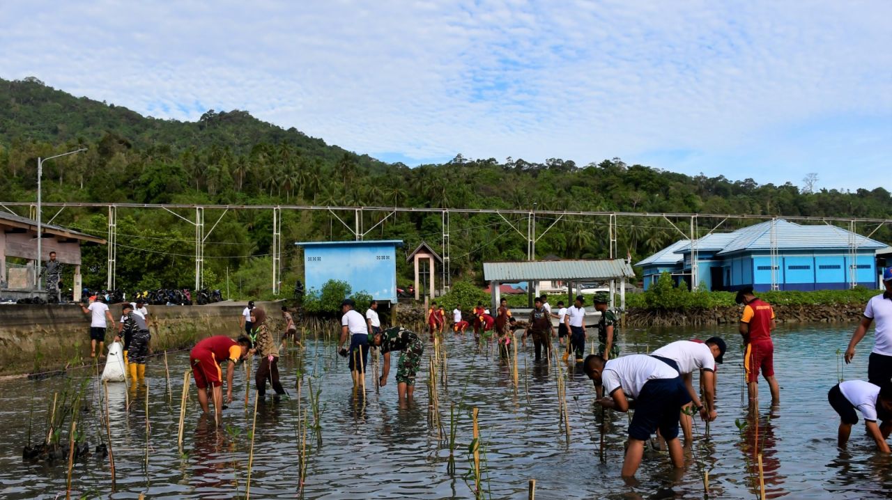 Berlokasi di pesisir pantai sekitar wilayah Pelabuhan Antang, Desa Tarempa Timur, Kecamatan Siantan, Kabupaten Kepulauan Anambas, para personel TNI-Polri serta Pramuka Saka Bahari Anambas yang dikomandoi Danlanal Tarempa bahu membahu menanam sekitar 2500 pohon mangrove.