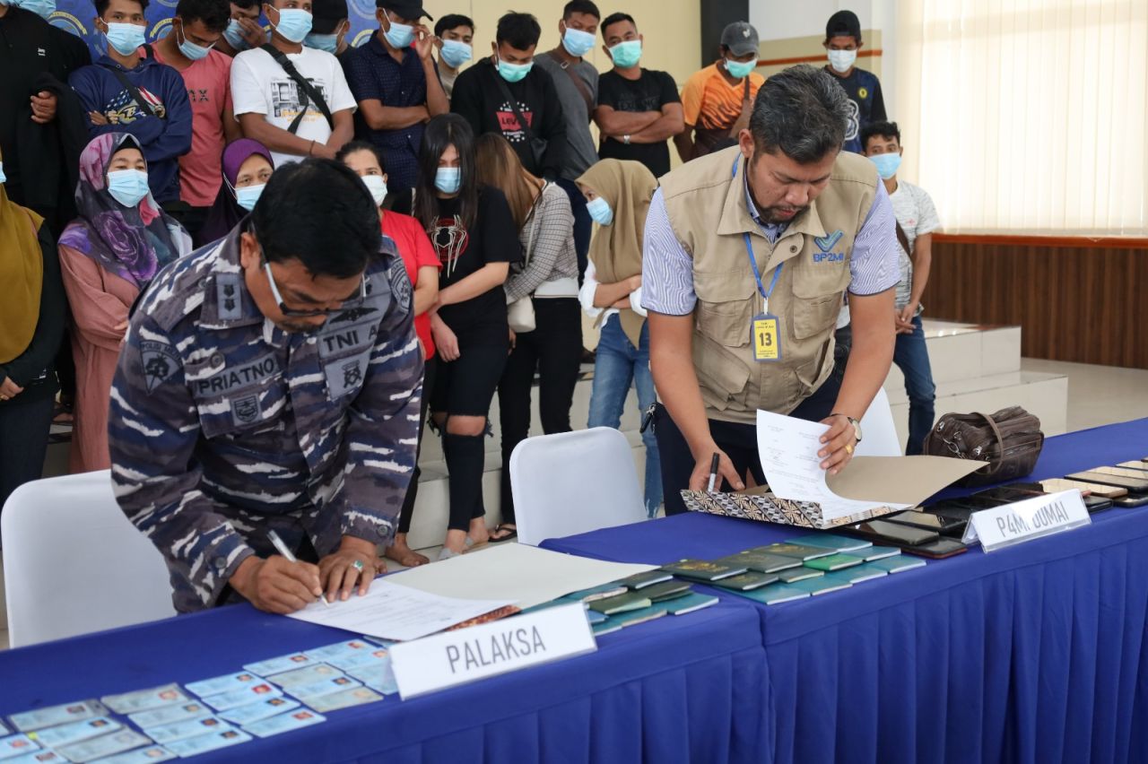BELAWAN (Beritakeadilan, Sumatera Utara) – Pangkalan Utama TNI AL I, (Lantamal I) melalui Tim Fleet One Quick Response (F1QR) Lanal Dumai kembali berhasil mengamankan sebanyak 42 orang (34 orang laki-laki dan 8 orang perempuan) Pekerja Migran Indonesia (PMI) Non Prosedural, yang kembali dari Malaysia melalui jalur illegal, bertempat di Pesisir Pantai Pelinting, Jalan Jenderal Sudirman, Kelurahan Pelintung, Kecamatan Medang Kampai, Kota Dumai, Riau, Minggu (23/6/2024).