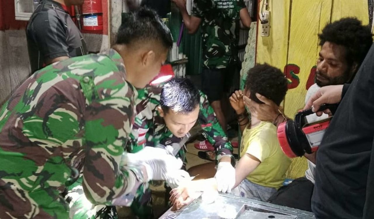 Kesigapan Satgas Yonif 143/TWEJ Tangani Bocah Usia 10 Tahun Menderita Luka Robek Akibat Parang