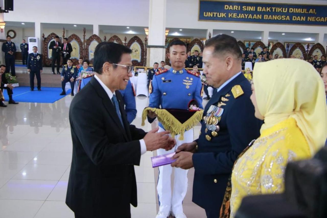 Usai pelaksanaan upacara Peringatan Ke-76 Hari Bakti TNI AU, Ketua Umum DPP PEPABRI Jenderal TNI (Purn) H. Agum Gumelar menyerahkan Kartu Tanda Anggota (KTA) kepada perwakilan perwira tinggi TNI AU yang memasuki masa purna tugas yaitu Marsdya TNI (Purn) Tatang Harliansyah.
