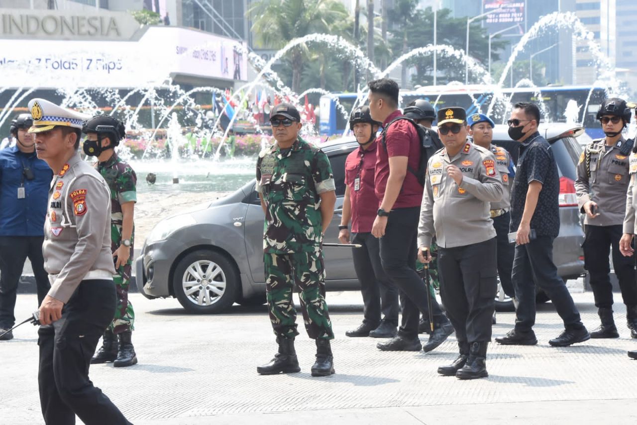 Mulai dari Posko Monas, Pangdam Jaya Mayjen TNI Mohamad Hasan dan Kapolda Metro Jaya Irjen Pol Karyoto memantau langsung pengamanan aksi unjuk rasa buruh yang menuntut meninjau kembali tentang UU cipta kerja Omni Buslaw yang sudah disahkan oleh pemerintah.