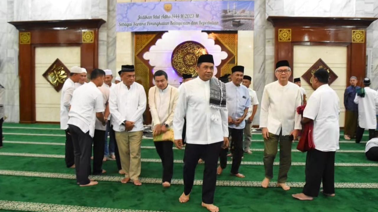 Memasuki ibadah sholat Idul Adha, khotib sampaikan ceramahnya bahwa jauh sebelum peradaban manusia, Nabi Ibrahim AS diperintahkan untuk menyembelih anaknya Ismail. Ujian Nabi Ibrahim AS ini adalah awal sejarah ibadah Qurban yang sebelumnya didahului dengan pelaksanaan ibadah haji oleh umat Islam.
