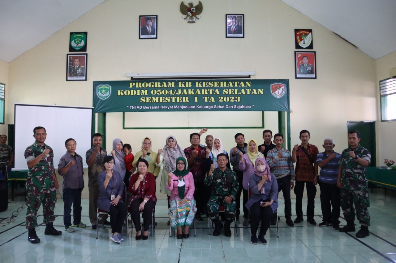JAKARTA SELATAN (Beritakeadilan, DKI Jakarta) – Dengan bertemakan “TNI AD Bersama Rakyat Menjadikan Kelurga Sehat dan Sejahtera” Kodim 0504/Jakarta Selatan selenggarakan Program KB Kesehatan Semester I Th. 2023 bertempat di Aula Makodim 0504/JS Jl. Cendrawasih Keb. Lama Jaksel, Jum’at (9/6/2023).