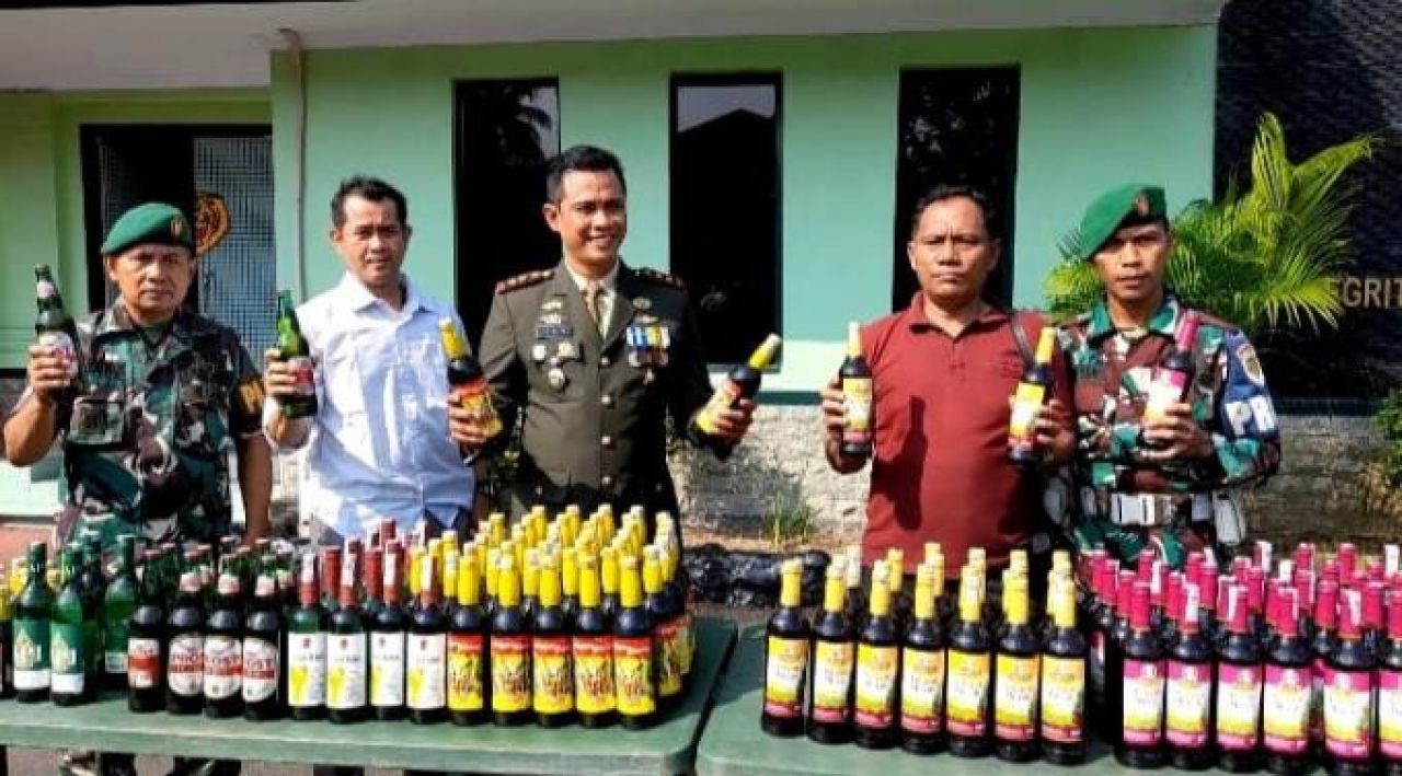 KABUPATEN LEBAK (Beritakeadilan, Banten) – Satuan Unit Intel Kodim 0603/Lebak berhasil menyita ratusan botol miras ilegal di daerah Gunung Kencana Kabupaten Lebak, Banten.