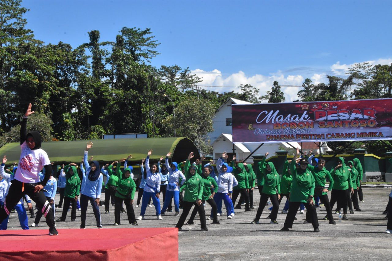 KABUPATEN MIMIKA (Beritakeadilan.com, DK Jakarta) – Bertempat di Lapangan Upacara Makodim 1710/Mimika, Kodim 1710/Mimika bersama Kogabwilhan III berkolaborasi dengan Youtuber Bobon Santoso menggelar Masak Besar dan Olahraga Bersama Dharma Pertiwi Cabang Mimika, Senin (13/10/2025).