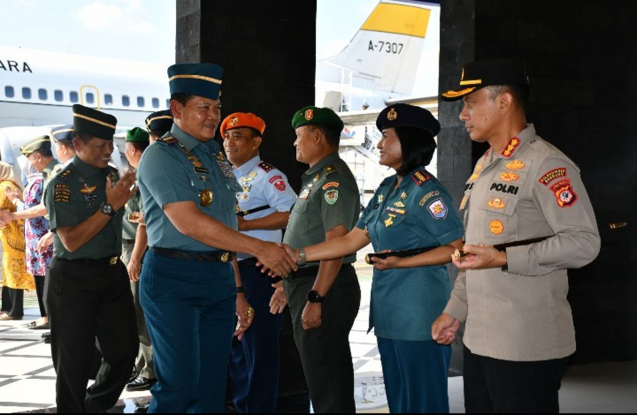 BANDUNG (Beritakeadilan, Jawa Barat) – Komandan Pangkalan TNI Angkatan Laut (Danlanal) Bandung Kolonel Laut (KH/W) Dr. Renny Setiowati, S.T., M.Sc., M.Tr.Hanla., bersama jajaran Forkopimda Jawa Barat menyambut kedatangan Panglima TNI Laksamana TNI Yudo Margono, S.E., M.M., C.S.F.A., beserta rombongan dengan menggunakan Pesawat TNI AU Boeng 737/A-7306, bertempat di Sompil Lanud Husein Sastra Negara Bandung, Kamis (08/06/2023).