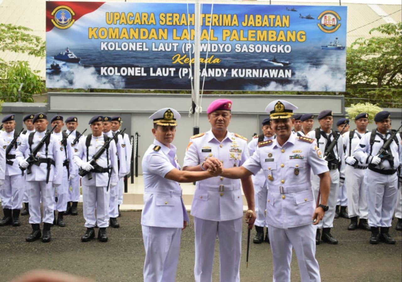 PALEMBANG (Beritakeadilan, Sumatera Selatan) – Komandan Pangkalan TNI Angkatan Laut (Danlantamal) III Brigjen TNI (Mar) Harry Indarto, S.E., M.M., memimpin secara langsung Upacara Serah Terima Jabatan Komandan Pangkalan TNI Angkatan Laut (Lanal) Palembang dari Kolonel Laut (P) Widyo Sasongko, S.E., M.Tr., Hanla., kepada Kolonel Laut (P) Sandy Kurniawan, bertempat di Lapangan Apel Mako Lanal Palembang, Selasa (09/05/2023).