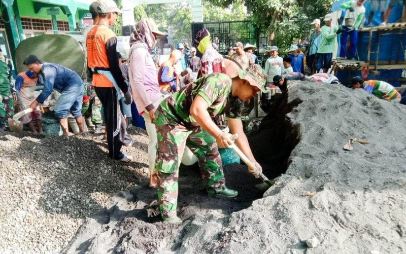 KABUPTEN BOJONEGORO (Beritakeadilan, Jawa Timur) – Jajaran Bintara Pembina Desa (Babinsa) Koramil 10/Kanor Kodim 0813 Bojonegoro, bersama masyarakat melaksanakan kegiatan karya bakti pengecoran dek lantai 2 gedung sekolah RA – Madrasah Ibtidaiyah (MI) Islamiyah Yayasan Al Khairat Desa Tambahrejo Kecamatan Kanor Kabupaten Bojonegoro, Kamis (21/11/2024).