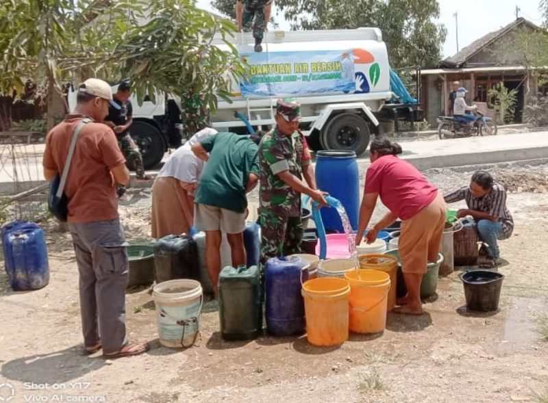 Pendistribusian 5 truk tanki masing-masing berkapasitas 5000 liter air bersih ke wilayah kekeringan dilakukan sebagai wujud kepedulian dalam membantu kesulitan warga masyarakat. Kegiatan ini dipimpin langsung oleh Bintara Tinggi Tata Usaha dan Urusan Dalam (Bati Tuud) Koramil 0813-12/Kasiman, Serma Ngaliyanto.