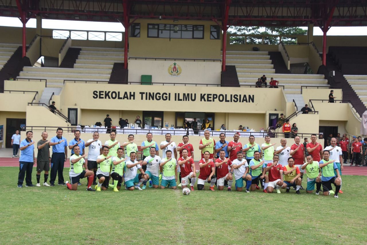 Olahraga bersama kali ini Polda Metro Jaya menggelar pertandingan sepakbola. Dalam satu tim terdiri dari gabungan TNI dan Polri.