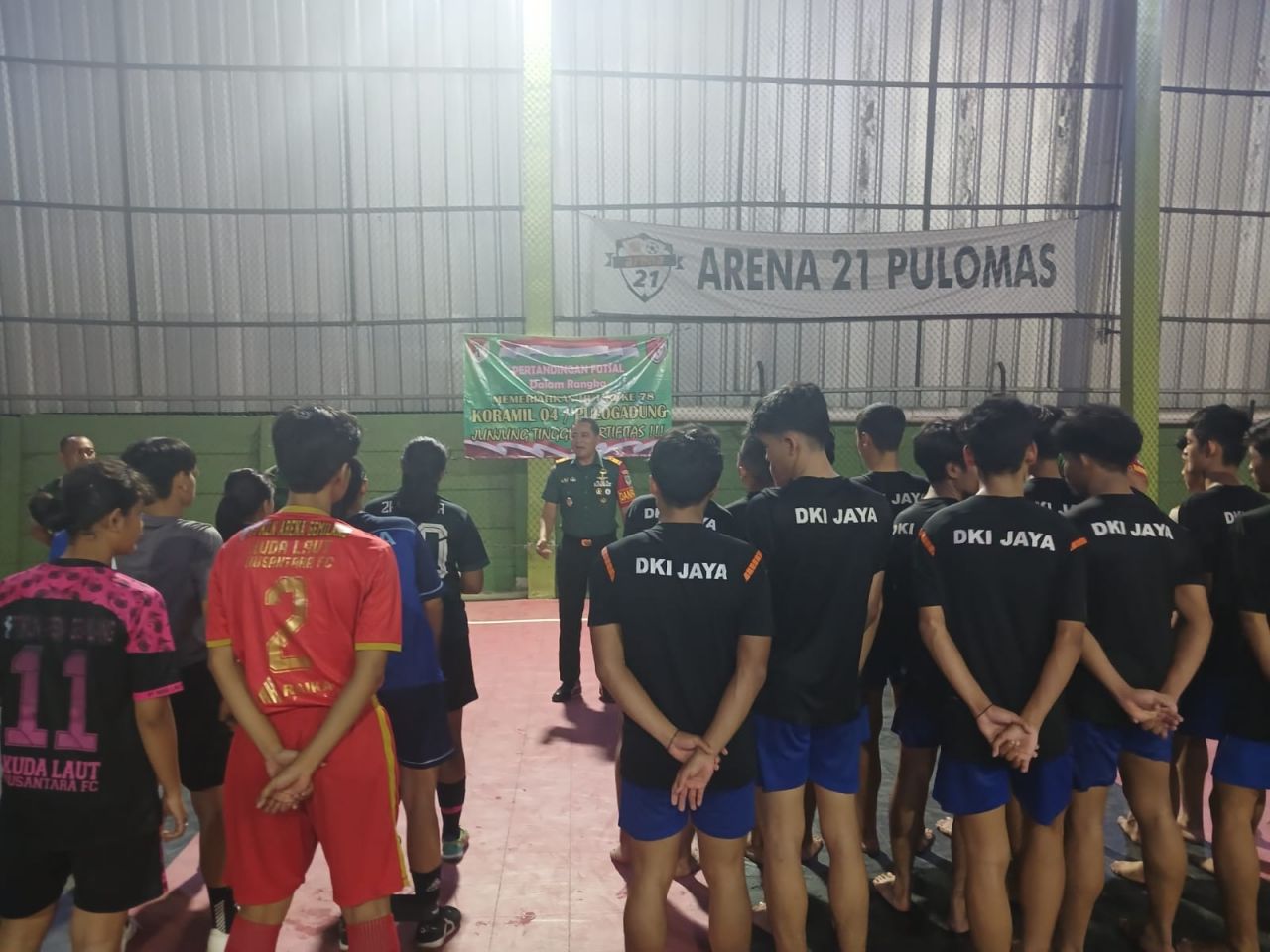 Kegiatan pembukaan lomba futsal dalam rangka HUT Republik Indonesia ke 78 ini dibuka oleh Danramil Pulogadung Kapten Inf Susanto, dengan mempertandingkan tim Futsal dari tingkat SMP dan SMA yang ada diwilayah binaan teritorial Koramil Pulogadung.