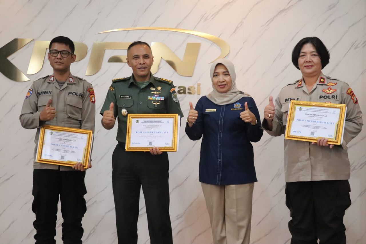 Piagam penghargaan diserahkan langsung oleh Kepala KPPN Bekasi Ibu Hajoe Saptaria, S.E., kepada Danrem 051/Wkt Brigjen TNI Yustinus Nono Yulianto, S.E., M.Si., yang diwakili oleh Kasiren Korem 051/Wkt Kolonel Inf Gandung Eko Prabowo, S.I.P., turut hadir Kasi MSKI M. Prasetyo W, Fungsional PTPN Ndaru Muchtarom A. bertempat di ruang seba guna KPPN Jl. Pramuka Marga Jaya Bekasi Selatan Kota Bekasi. Rabu (9/8/2023).