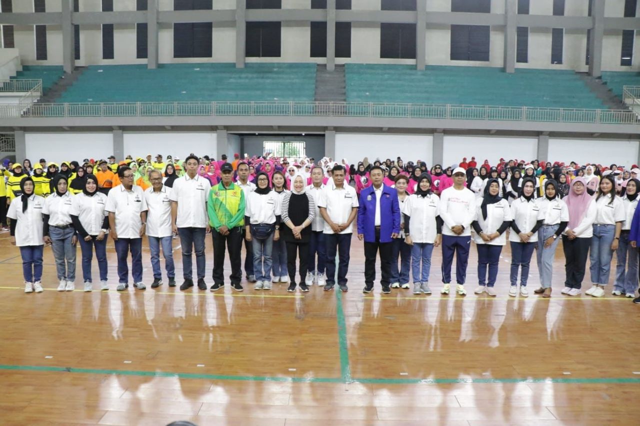 Pengukuhan pengurus KORMI Bojonegoro berjalan khidmat GOR Utama Ngumpakdalem Bojonegoro, Jumat (21/7/2023). Usai pengukuhan, kegiatan dilanjutkan dengan senam massal yang diikuti warga.