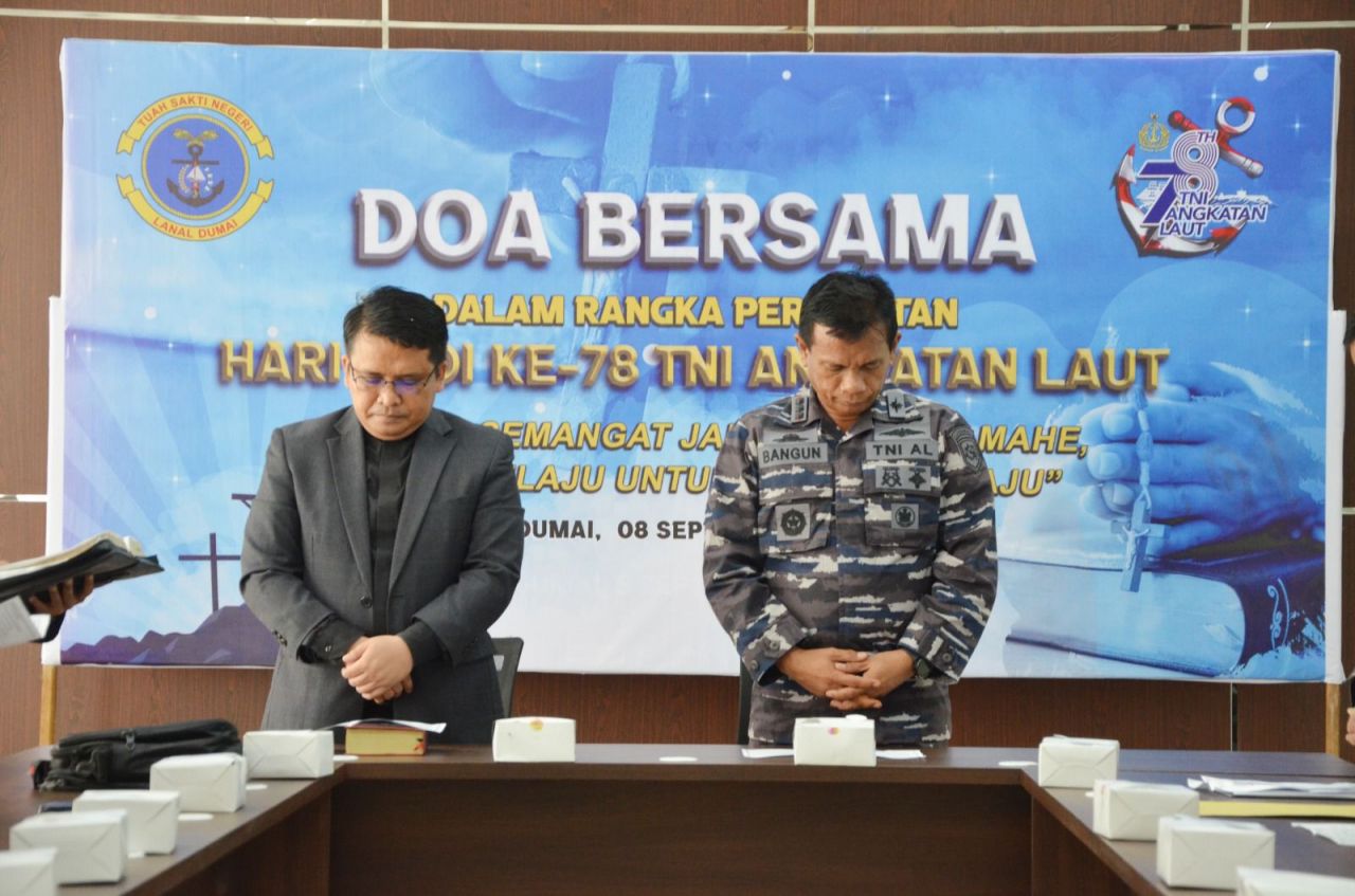 Komandan Lanal Dumai menyampaikan bahwa do’a bersama dalam rangka menyambut HUT TNI Angkatan Laut Ke-78 Tahun 2023, sebagai wujud syukur kepada Tuhan Yang Maha Esa, semoga tugas kedepan diberikan kelancaran. Selain itu, juga mendoakan para pahlawan pejuang bangsa khususnya prajurit TNI Angkatan Laut.