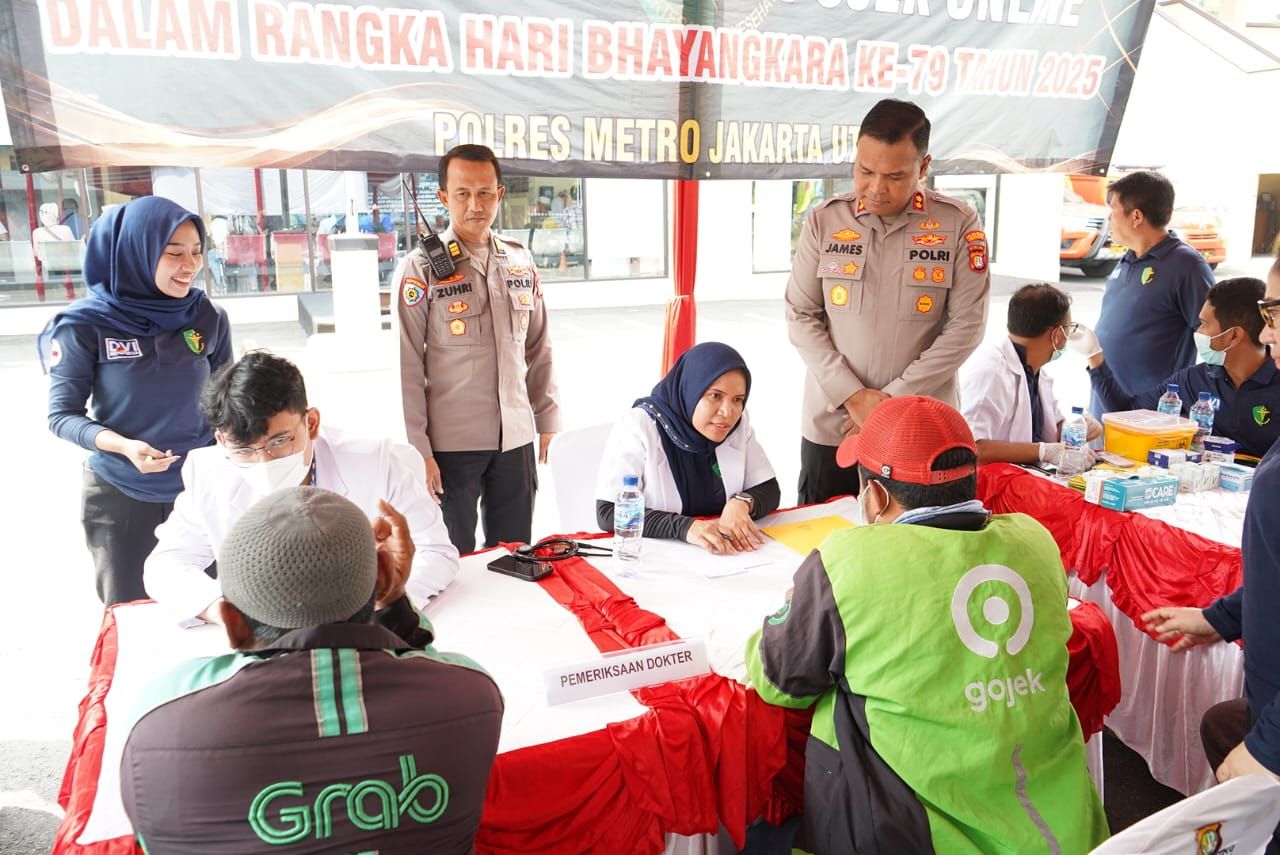 Memperingati HUT Bhayangkara ke-79, Polres Metro Jakarta Utara Gelar Bakti Kesehatan Gratis Bagi Ojol dan Warga