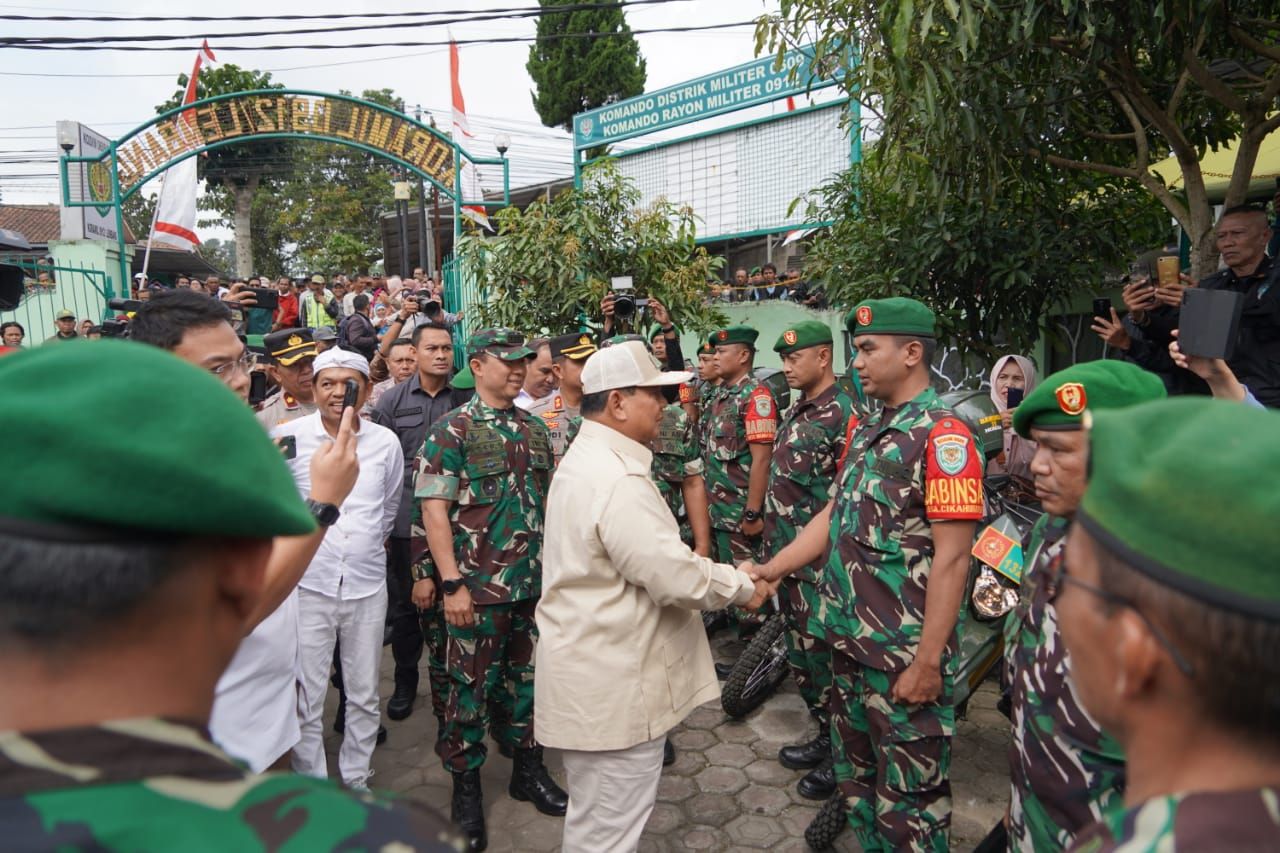 Menhan RI Bapak Prabowo Subianto beserta rombongan disambut Danrem 062/TN Kolonel Inf Asep Sukarna, S. Sos., S.I.P.,M.M., Dandim 0609/Cimahi Letkol Inf Hary Novana Andriyas dan Kapolres Cimahi AKBP Aldi Subartono, S.H., S.I.K, M.H. CPHR.,