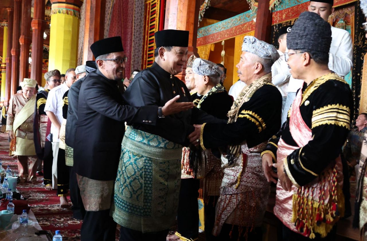 Sesampainya di sana, Menhan Prabowo disambut oleh Dipertuan Raja Alam Pagarium Sultan Muhammad Farid Thaib Tuanku Abdul Fatah dan tarian Galombang dan Prosesi Adat Batagoa ( siraman butiran beras ). Acara kemudian dilanjutkan dengan Prosesi Adat berupa penyerahan tongkat dan sahut-sahutan pantun oleh Ninik Mamak.
