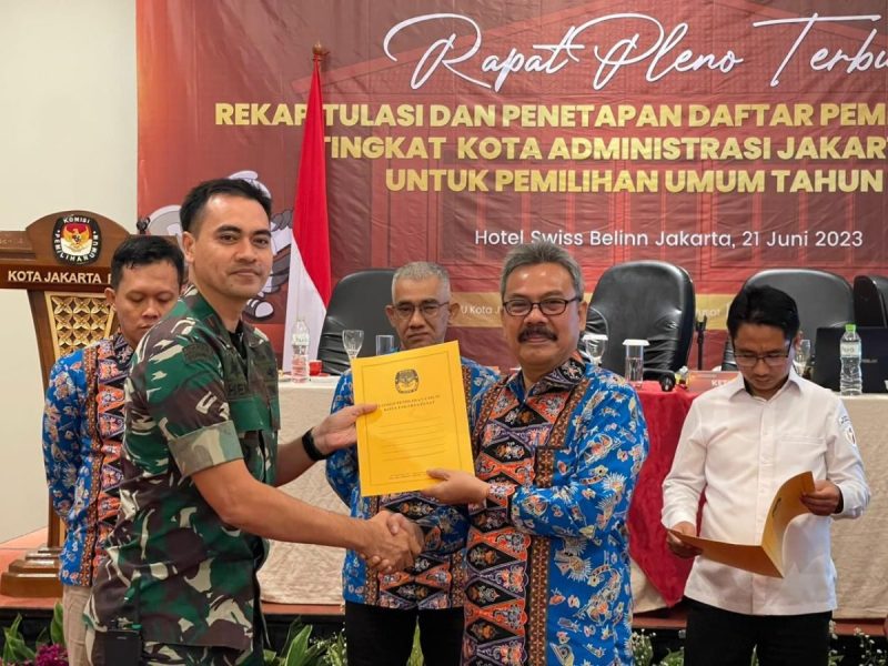 JAKARTA PUSAT (Beritakeadilan, DKI Jakarta) – Danramil 08/JB Mayor Arm Hendri Nuryanto, S.H., mewakili Dandim 0501/JP menghadiri Rapat Pleno Terbuka Rekapitulasi dan Penetapan Daftar Pemilih Tetap (DPT) Kota Administrasi Jakarta Pusat yang dibuka langsung oleh Walikota Jakarta Pusat bertempat di Hotel Swias Bellin, Pademangan, Jakarta Utara. Rabu (21/06/2023)