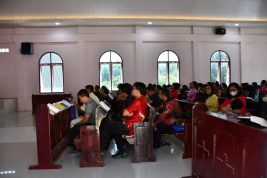 Sebelumnya Sekda Augus mengikuti ibadah dengan pengkhotbah Guru Huria St.Harry Siagian.