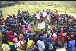 BEDIL (Lanny Jaya) - Personel Satgas Yonif Mekanis 203/AK menghimbau kepada masyarakat Pegunungan Tengah untuk hidup sehat dengan ikut berpartisipasi dalam perlombaan bola volly yang diselenggarakan di Lapangan Volly Desa Lowanom, Distrik Malagayneri, Kab. Lanny Jaya, Jumat (03/02/2023).