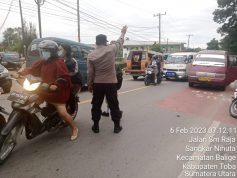 Rutinitas Gatur Lalin Pagi, Polsek Balige Bantu Menyeberangkan Anak Sekolah