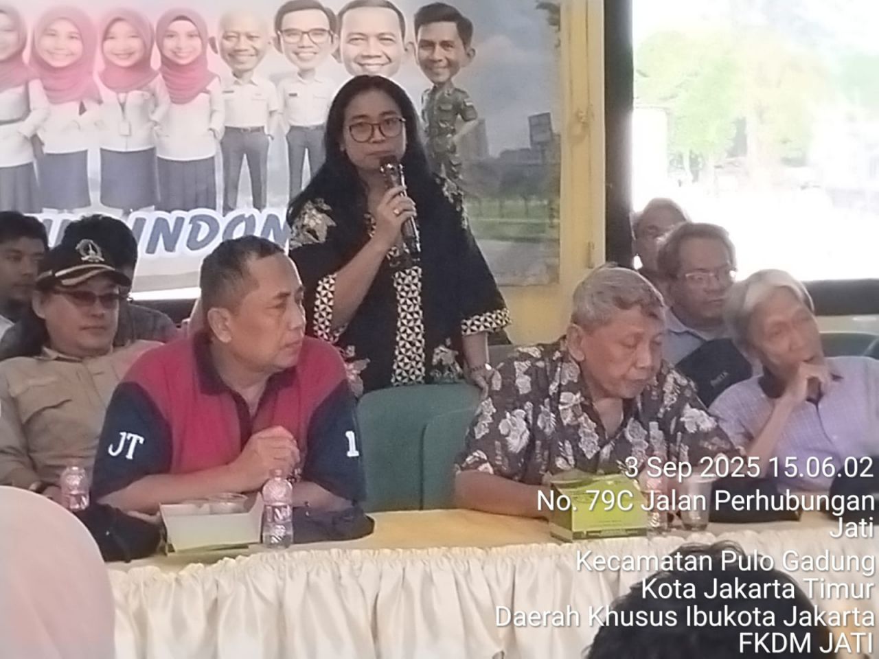 JAKARTA TIMUR (Beritakeadilan.com, DK Jakarta) – Pemerintah Kelurahan Jati, Kecamatan Pulogadung, Jakarta Timur, menggelar Rapat Koordinasi Masalah Ketertiban Umum bertajuk "Jaga Jakarta" kegiatan ini berlangsung di Aula Lantai III Kantor Kelurahan Jati, dan dihadiri berbagai unsur pimpinan wilayah serta tokoh masyarakat, Rabu (3/9/2025).
