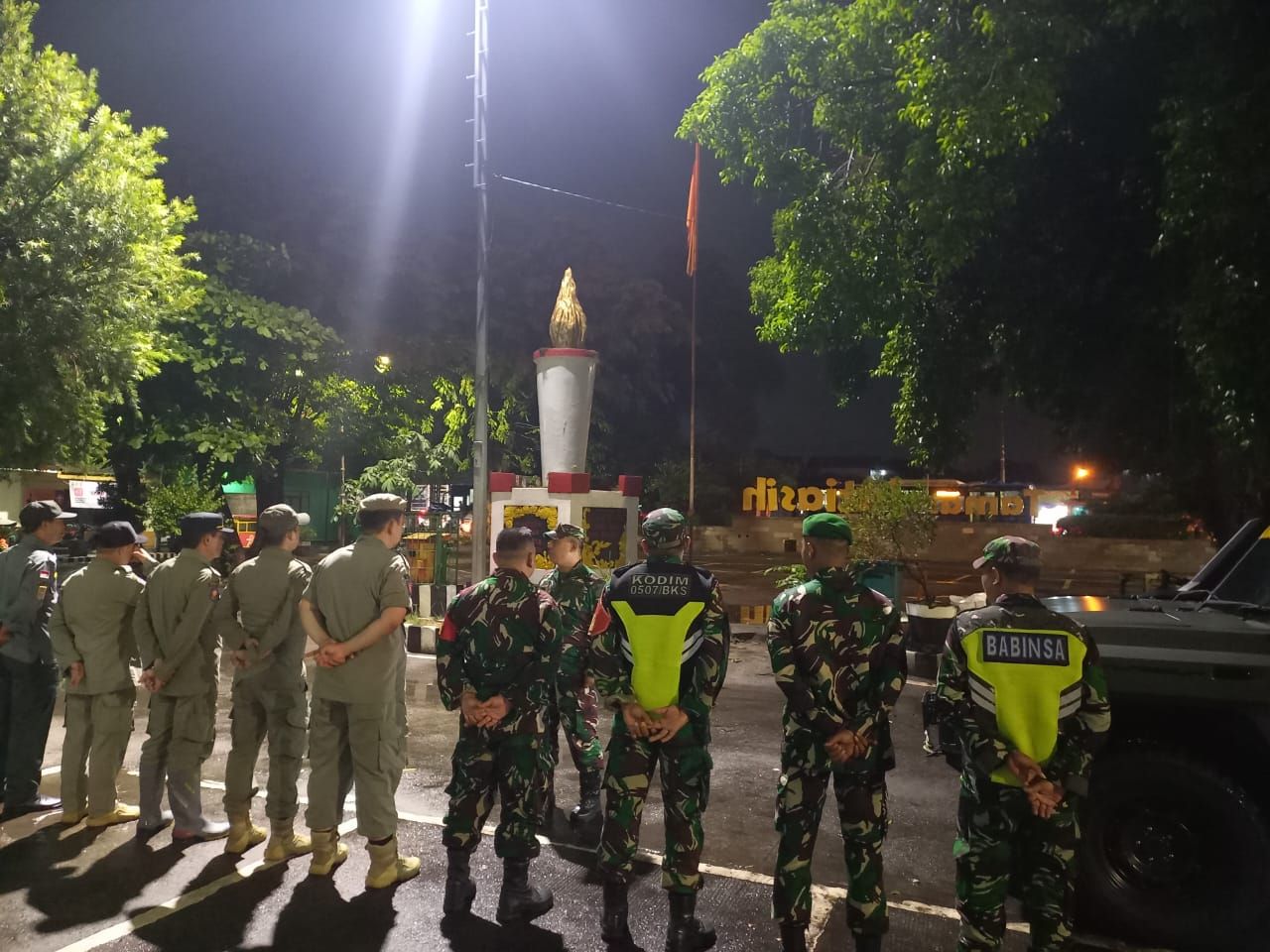 Wujudkan Rasa Aman, Koramil 04/Jatiasih Bersama Komduk dan Komcad Gelar Patroli Humanis dan Siskamling Malam Hari