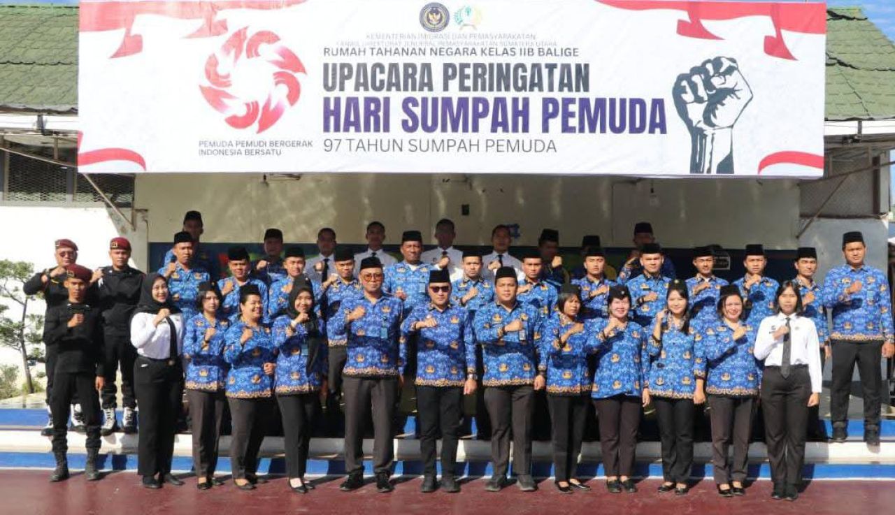 KABUPATEN TOBA (Beritakeadilan.com, Sumatera Utara) - Pemuda Pemudi Bergerak Indonesia Bersatu, Rumah Tahanan Negara Kelas IIB Balige Kanwil Ditjen Pemasyarakatan Sumatera Utara laksanakan Upacara Peringatan Hari Sumpah Pemuda ke-97 Tahun 2025 (Selasa, 28/10)