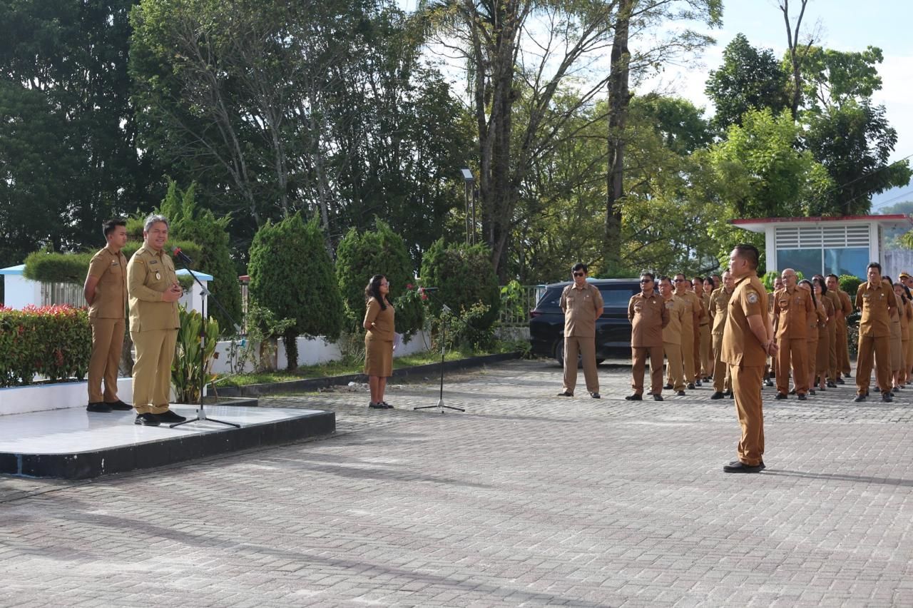 KABUPATEN TOBA (Beritakeadilan.com, Sumatera Utara) - Wakil Bupati Tapanuli Utara Dr. Deni Parlindungan Lumbantoruan, M. Eng memimpin apel gabungan yang dihadiri oleh Sekretaris Daerah Drs. Henry M.M Sitompul, M. Si, para Staf Ahli Bupati, Asisten, Pimpinan Perangkat Daerah (OPD) bersama pejabat eselon 3, serta jajaran staf Kantor Bupati bertempat di halaman Kantor Bupati Taput, Tarutung, Senin (3/11/2025)