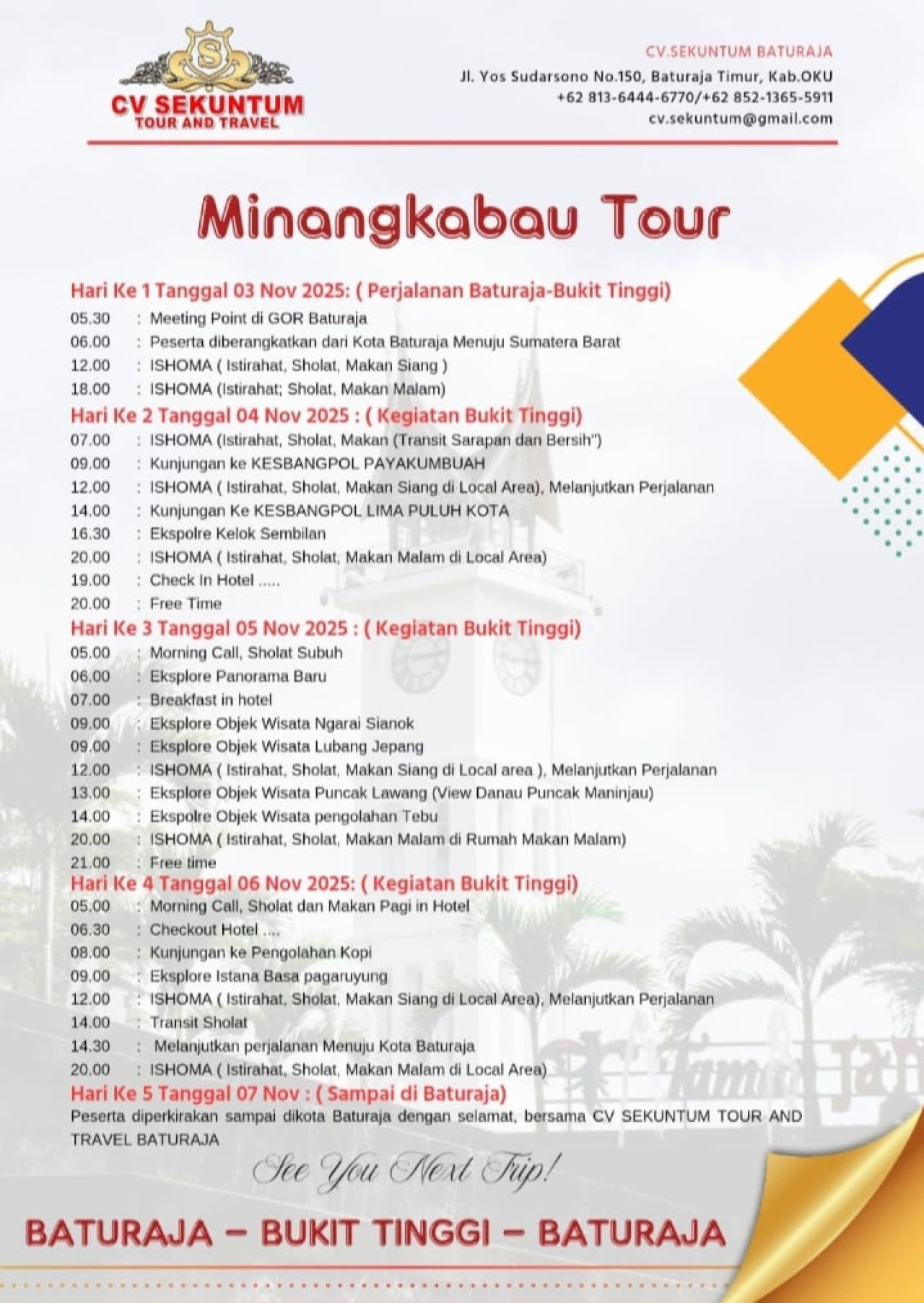 Ketua FPK OKU Drs H Suprijadi Yazid, melalui Aptrama Dedy, selaku Ketua Pelaksana kegiatan Study Tiru ini menjelaskan bahwa FPK OKU pada tahun 2025 melaksanakan kegiatan kunjungan ke Kesbangpol dan FPK di Kabupaten Payakumbuh dan Lima Puluh Kota, Provinsi Sumbar, kita sama-sama berdo'a agar kegiatan ini berjalan lancar dan sukses, ujar Aptrama Dedy.