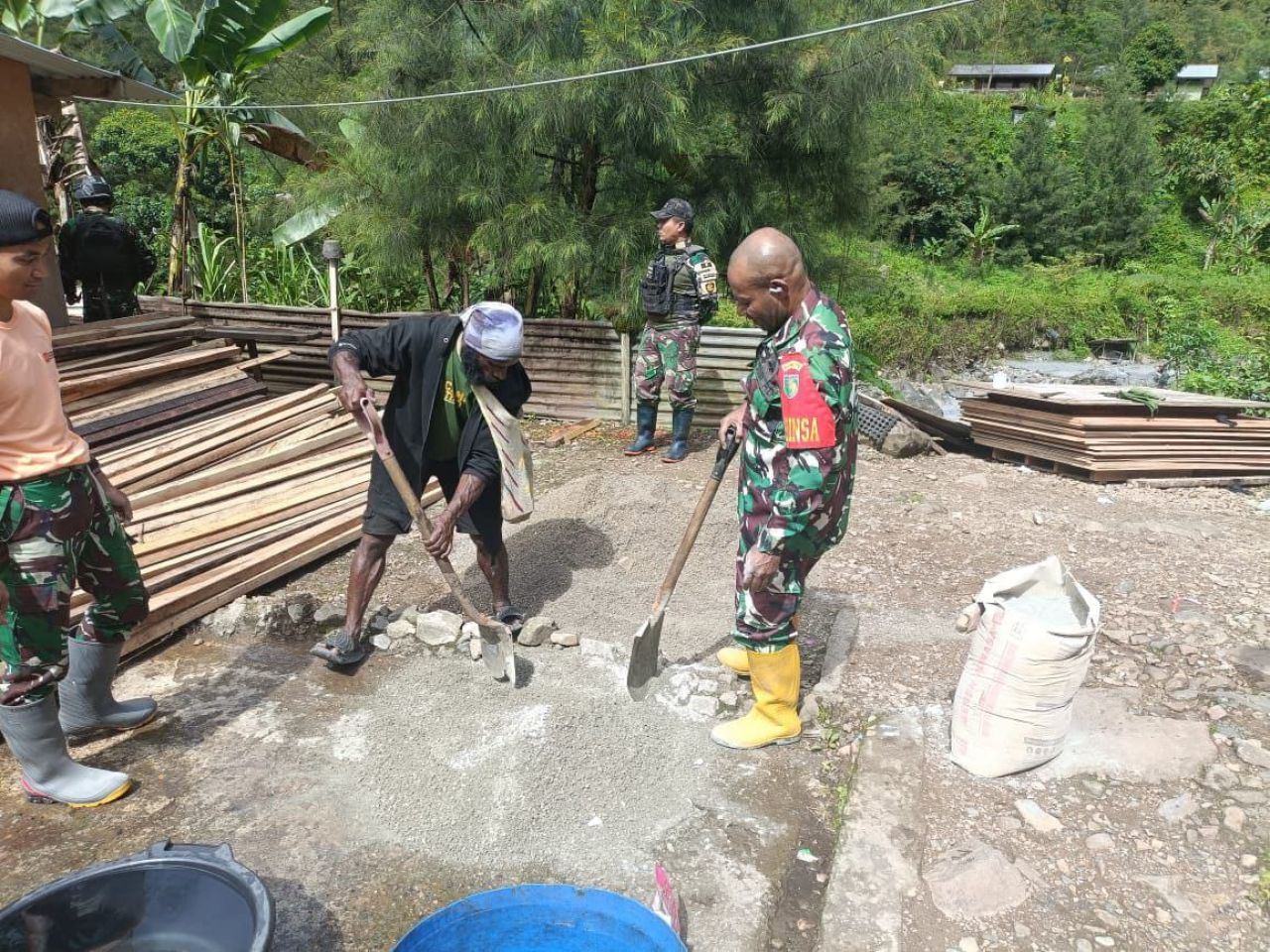 TIMIKA (Beritakeadilan.com, Papua) - Dalam rangka mewujudkan kemanunggalan TNI - Rakyat, Babinsa Koramil 1710-04/Tembagapura Pelda Indra R dan Serka Ikbertus Sumel melalui giar Binternya hari ini, membantu memperbaiki rumah di salah satu warga binaan an. bapak Anis Magai di Kp. Banti 2, Distrik Tembagapura, Kab. Mimika, Selasa (25/11/2025).