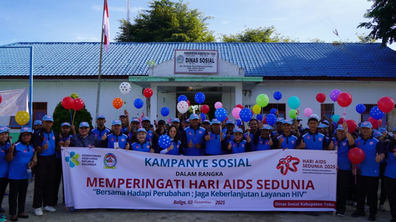 KABUPATEN TOBA (Beritakeadilan.com, Sumatera Utara) - Pemerintah Kabupaten Toba melalui Dinas Sosial memperingati Hari AIDS Sedunia lewat 'Kampanye Sosial Dalam Rangka Memperingati Hari AIDS Sedunia "Bersama Hadapi Perubahan: Jaga Keberlanjutan Layanan HIV' yang digelar pada Rabu (3/12/2025).