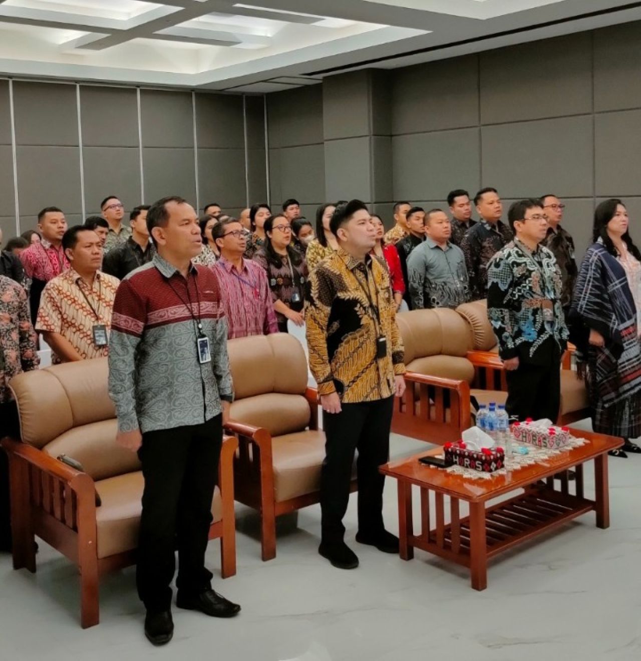 diruangan utama kantor BRI Cabang Balige Jalan Sisingamangaraja nomor 188. Tampak dalam zoom meeting yang berlangsung Kantor Pusat BRI Jakarta dihadiri secara langsung oleh jajaran manajemen BRI dan perusahaan anak, senior leaders, serta Insan BRILiaN (karyawan BRI) yang berpartisipasi secara langsung maupun virtual dari berbagai unit kerja BRI di dalam dan luar negeri.