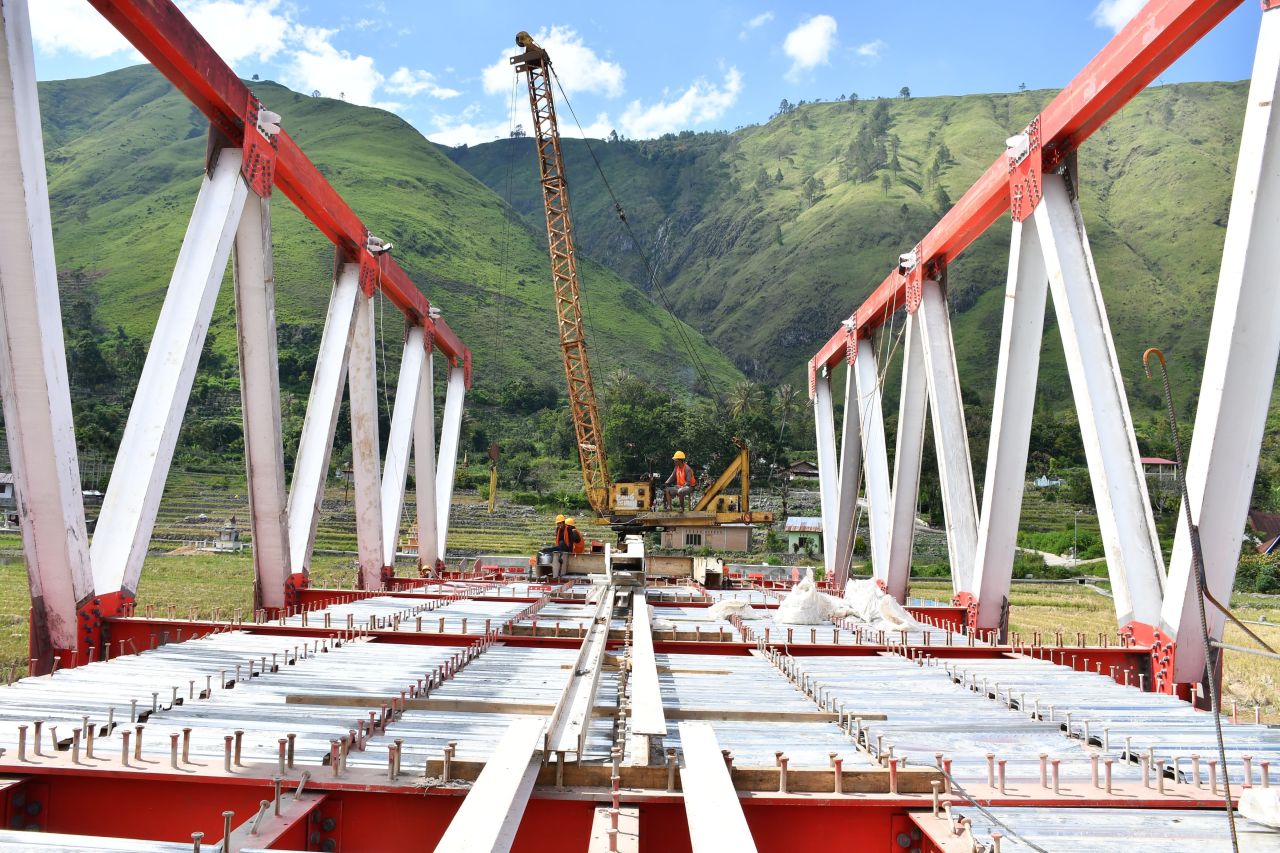 “Pembangunan jembatan ini merupakan bentuk sinergi pusat dan daerah. Abutment jembatan dibangun melalui APBD Kabupaten Samosir, sedangkan konstruksi jembatan dibiayai oleh Kementerian PUPR,” kata Vandiko saat melakukan monitoring pembangunan jalan dan Jembatan di Bonandolok, 23/12