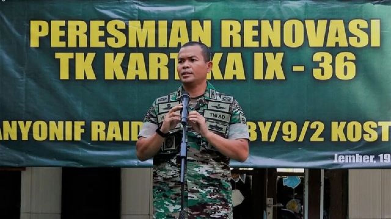 KABUPATEN JEMBER (Beritakeadilan, Jawa Timur) – Danyonif Raider 509 Kostrad Letkol Inf Hulisda Melala bersama Ketua Yayasan TK Kartika Koordinator Yonif Raider 509 Kostrad Ny. Lika Aulia, meresmikan Renovasi Gapura , Paving Blok serta Taman TK Kartika IX-36, Kel. Karangrejo, Kec. Sumbersari, Kab. Jember. Jumat (19/05/2023).