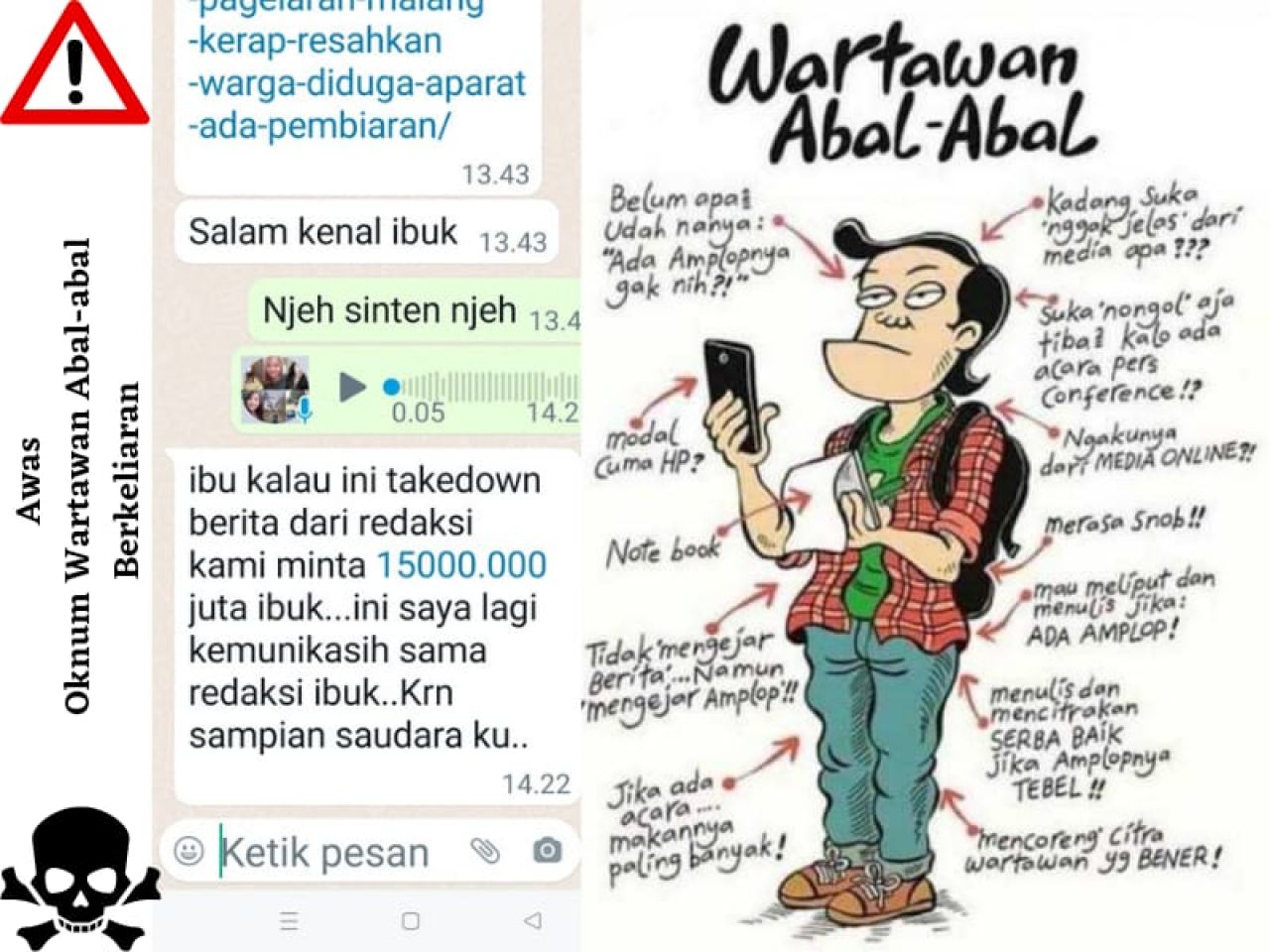 Oknum wartawan A, bahkan menjiplak sebuah pemberitaan yang sempat beredar luas di masyarakat, untuk menakut-nakuti pengusaha ayam berinisial S, dengan harapan mendapatkan uang sebesar 15 juta rupiah, Selasa (30/05/2023).