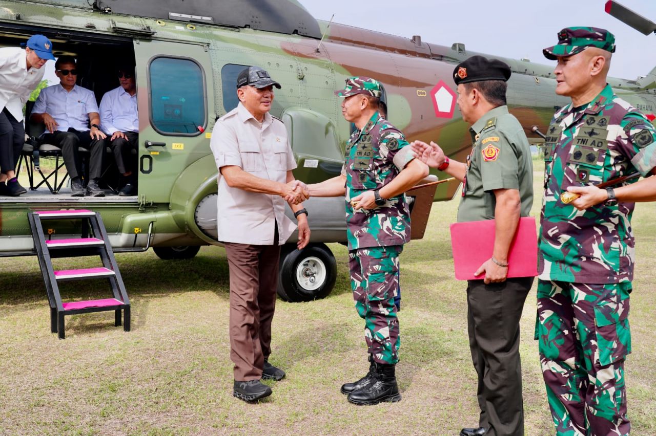 Didampingi Pangdam Jaya, Menhan RI beserta para Menteri dan rombongan meninjau langsung pembangunan sarana dan prasarana Yonif TP 843/PYV, meliputi perumahan dan barak prajurit, lahan pertanian, perkebunan, perikanan, serta peternakan yang dikelola satuan.