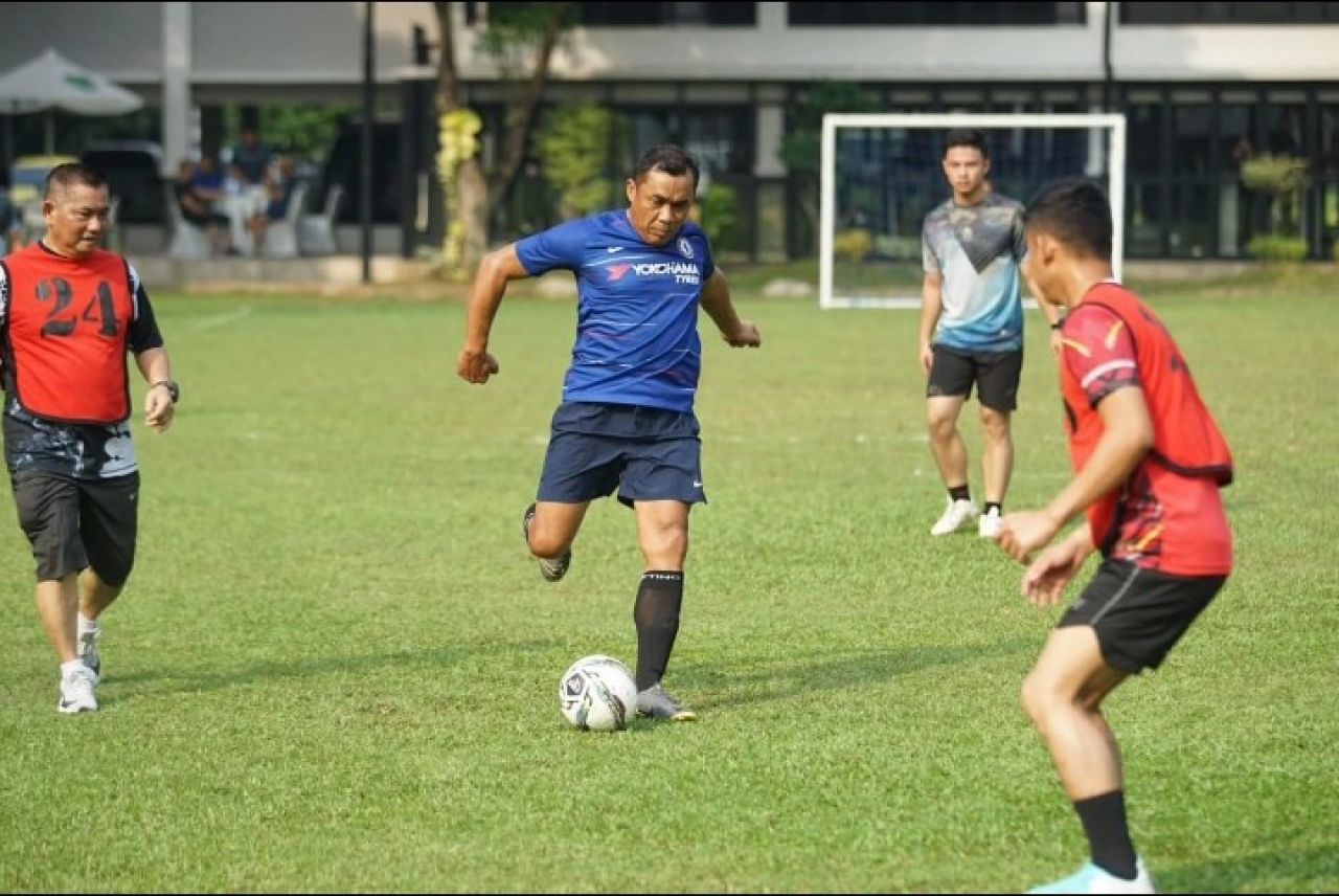 JAKARTA TIMUR (Beritakeadilan, DKI Jakarta) – Pangdam Jaya Mayjen TNI Mohamad Hasan bermain sepak bola bersama Prajurit di lingkungan Kodam Jaya, bertempat di lapangan Kartika markas Kodam Jaya, Kamis (25/5/2023).