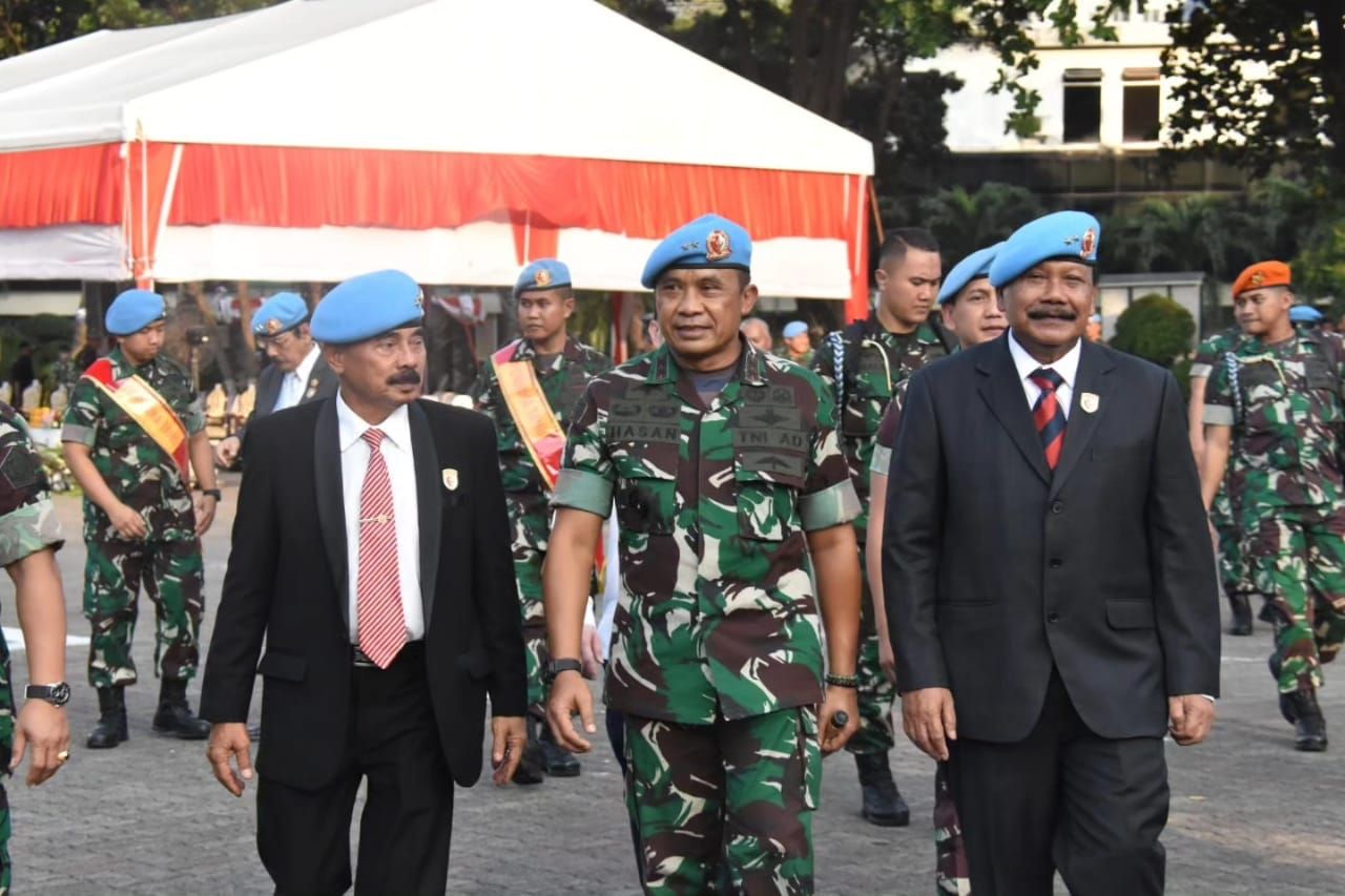 JAKARTA PUSAT (Beritakeadilan, DKI Jakarta) – Pangdam Jaya Mayjen TNI Mohamad Hasan bersama Ketua Persit Kartika Chandra Kirana Daerah Jaya Ny. Ririx M. Hasan, menghadiri acara Pembaretan dan penyematan Brevet “Setia Waspada” kepada Panglima TNI Laksamana TNI Yudo Margono, S.E., M.M., C.S.F.A., di lapangan hitam Mako Paspampres, Jakarta Pusat. Senin (07/08/2023).