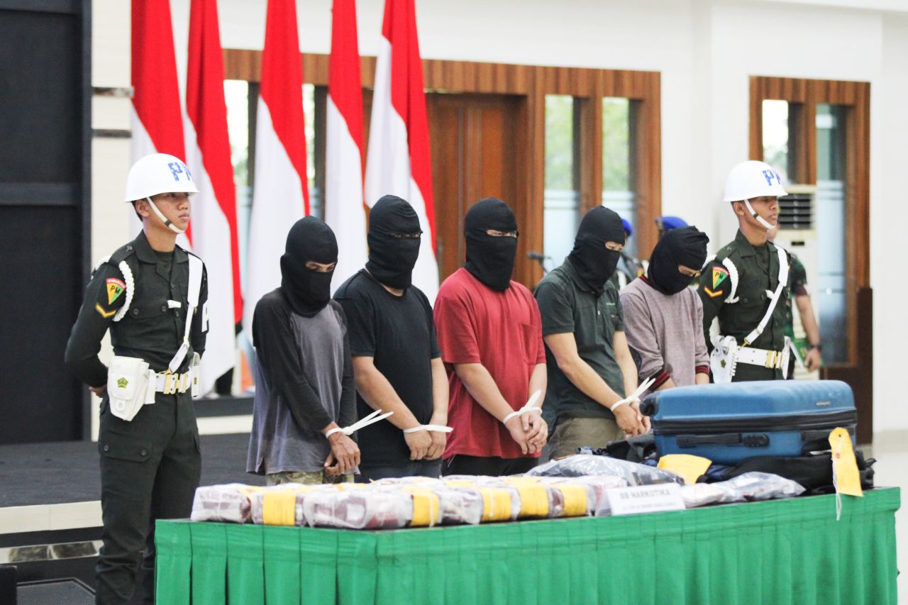 KABUPATEN BENGKAYANG (Beritakeadilan, Kalimantan Barat)-Pangdam XII/Tanjungpura, Mayjen TNI Iwan Setiawan, S.E., M.M., menyerahkan lima tersangka dan barang bukti sabu seberat 21,2 kilogram kepada Kepala BNN RI, Komjen Pol Martinus Hukom, S.I.K., M.Si. Sebagai hasil dari penggagalan penyelundupan oleh Satgas Pamtas RI-Malaysia Yonarmed 16/TK di Desa Semunying Jaya, Bengkayang. Penyerahan ini dilakukan di Aula Sudirman, Makodam XII/Tpr, Kota Pontianak, Kalimantan Barat, Senin (03/06/2024).