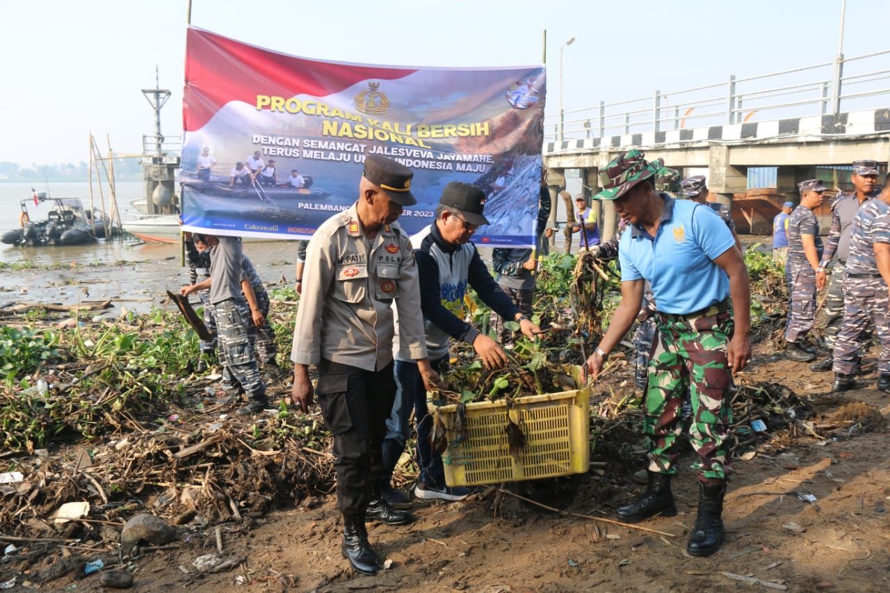 PALEMBANG (Beritakeadilan, Sumsel) – Dalam Rangka HUT TNI Angkatan Laut Ke-78 Tahun 2023, Pangkalan TNI Angkatan Laut (Lanal) Palembang melaksanakan Program Kali Bersih (Prokasih)dengan tema “Melalui Prokasih TNI Angkatan Laut Bersama Rakyat Siap Menjaga Kelestarian Lingkungan Guna Terus Melaju Untuk Indonesia Maju. Kegiatan tersebut berlokasi di Binpotmar TNI AL 1 Ilir Palembang, Selasa (05/09/2023).